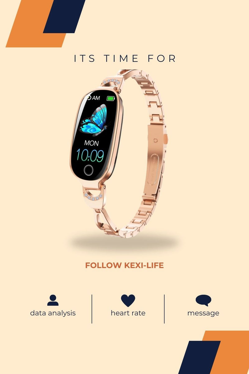 Kexi-life Blood sugar Blood Pressure monitoring Luxury Diamond Design Fashion Smartwatch